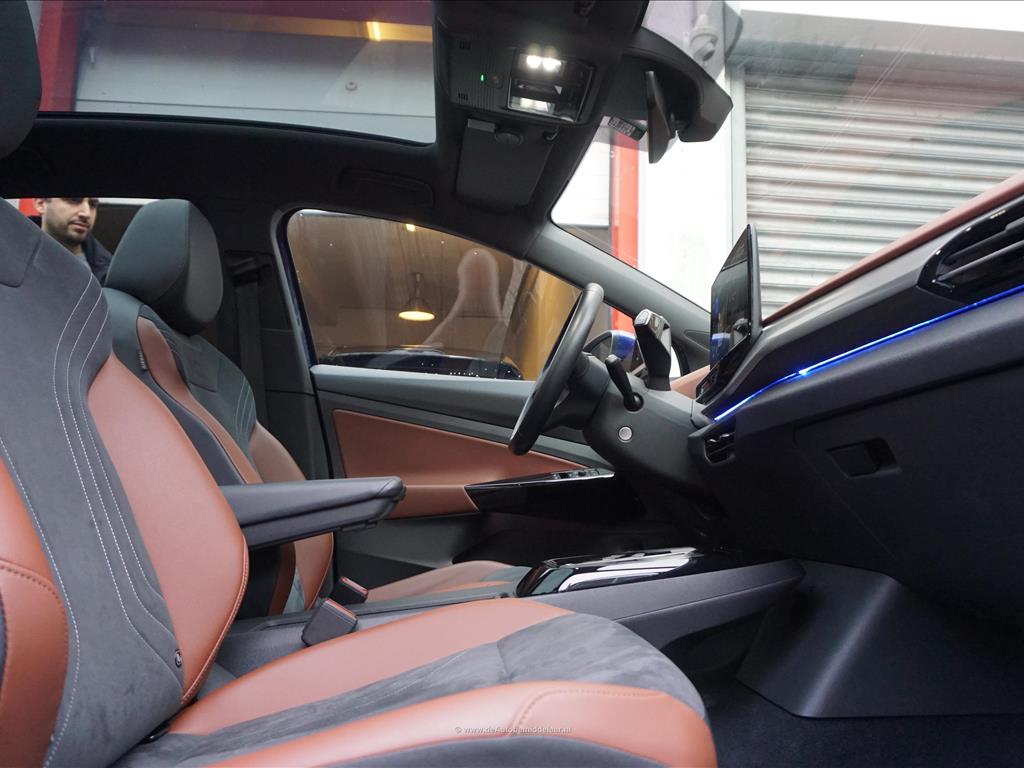 Rijkelijk uitgevoerde Volkswagen ID.5 77 kWh | Panoramadak | Adaptieve cruise control + lane departure met stuurcorrectie | MATRIX LED | 360 (TopView) camera | Lederen bekleding (velours middenbaan) | Sfeerverlichting | Stoelverwarming | Verwarmd stuurwiel | APPLE CarPlay/ Android Auto/ DAB audio/ Blue Tooth interface | Privacy glas achter | Dakspoiler | Afwijkende dakkleur (zwart) met zilver metallic daklijsten | Fabrieksgarantie 2-2028 | HV Batterij garantie 2-2031 of 160.000km | SOH 94.8% | achterbank in delen neerklapbaar, achterbank met armsteun en skiluik,
